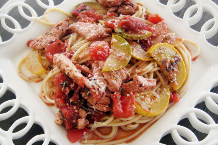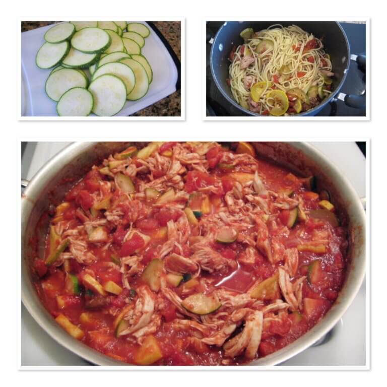 A different idea on pasta – change up a boring spaghetti dish by adding chicken and veggies.